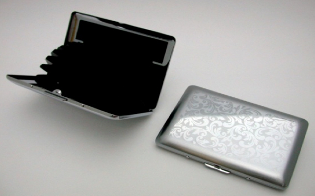 Smartcaze Firebird Shadow Silver luottokorttikotelo säilyttää tyylikkäästi kortit, setelit, kuitit ja muut lappuset.