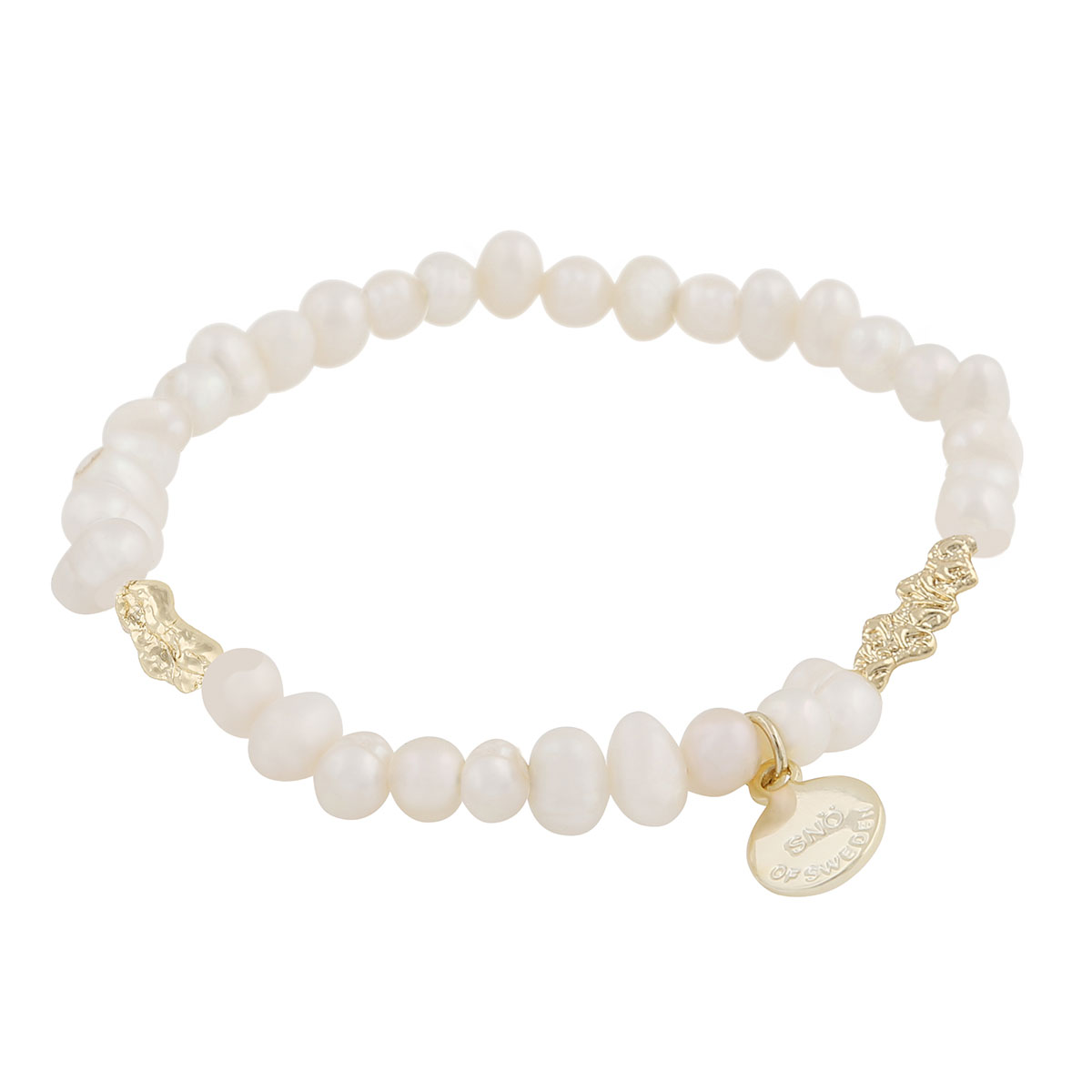 Elegantti ja luonnollisen kaunis Snö of Sweden Brittany rannekoru yhdistää klassisen tyylikkyyden ja modernin ilmeen. Korussa on makean veden helmiä, jotka on pujotettu joustavaan nauhaan, ja sitä koristavat kullatusta messingistä valmistetut yksityiskohdat. Korun pituus on 16 cm ja sen joustava muotoilu takaa mukavan istuvuuden useimpiin ranteisiin.