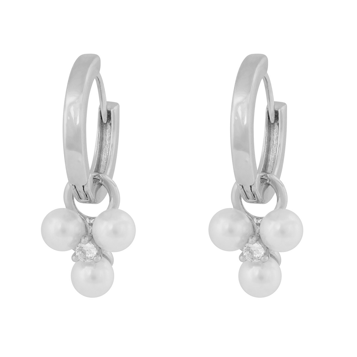 Snö of Sweden Eira 1368-6800010 korvakorut on valmistettu hopeoidusta messingistä ja siihen on istutettu kolme vaaleaa helmeä koristeeksi. Pituus 21 mm ja leveys 8 mm. Helmikorvarenkaat ovat ihanteellinen valinta modernille, tyylitietoiselle naiselle.