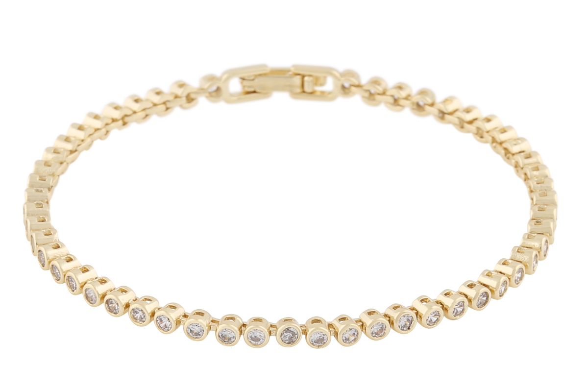 SNÖ of Sweden Malibu small stone kirkas kulta tennisrannekorun 1316-3500251 pinta on viimeistelty useilla, kirkkailla zirkonioilla. Klassinen ja ajaton tennisrannekoru on jokaisen asun luottoasuste, joka taipuu useisiin erilaisiin tyyleihin. Rannekorun pituus on 17,5 cm, ja paksuus on 3 mm.