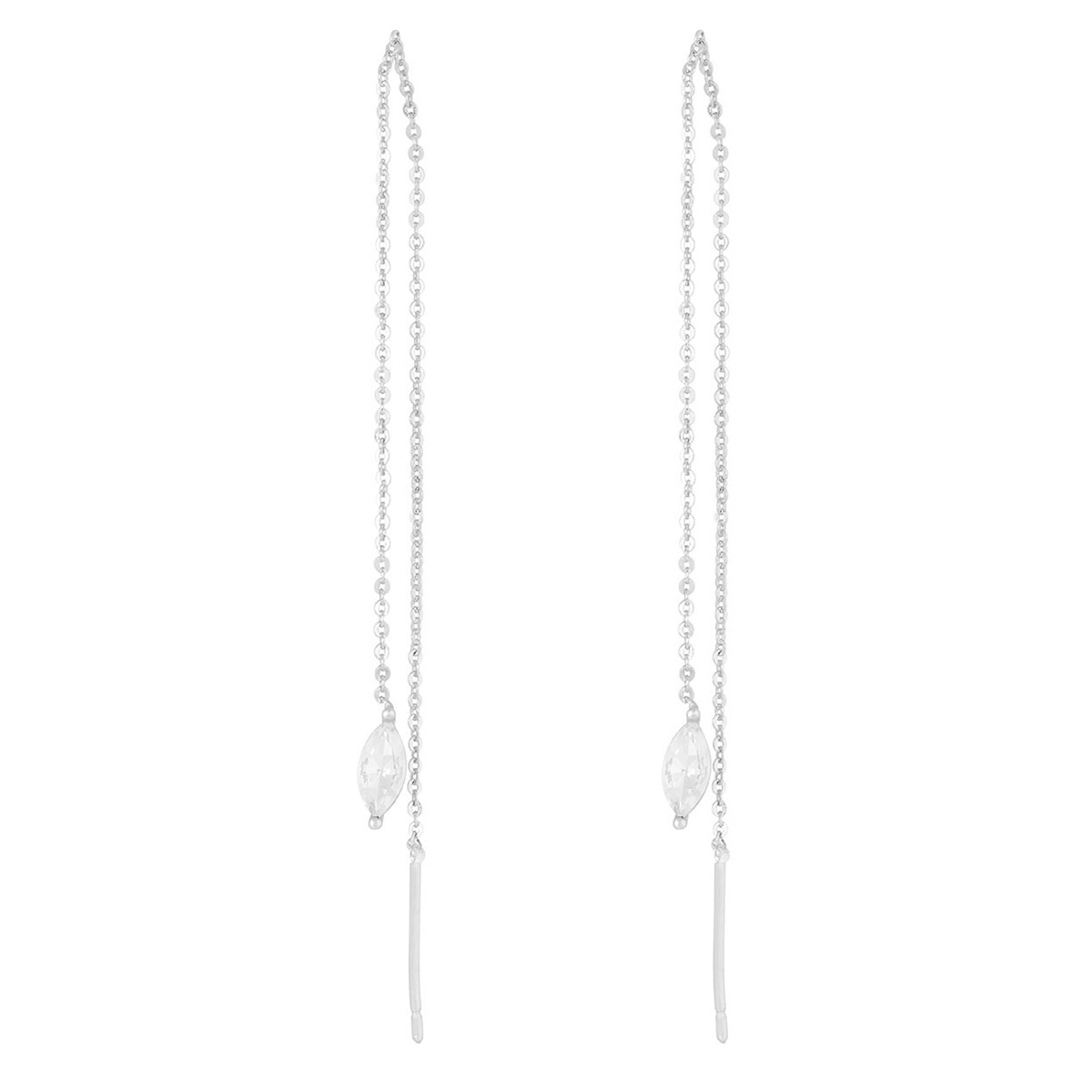 Snö of Sweden Noctelle 1369-6110012 hopeoidut roikkuvat korvakorut on valmistettu messingistä ja niihin on istutettu suuri kirkas zirkonia tuomaan korulle lisähohtoa. Pituus 5 cm. Korvakorut sopivat täydellisesti sekä arkeen että juhlaan.