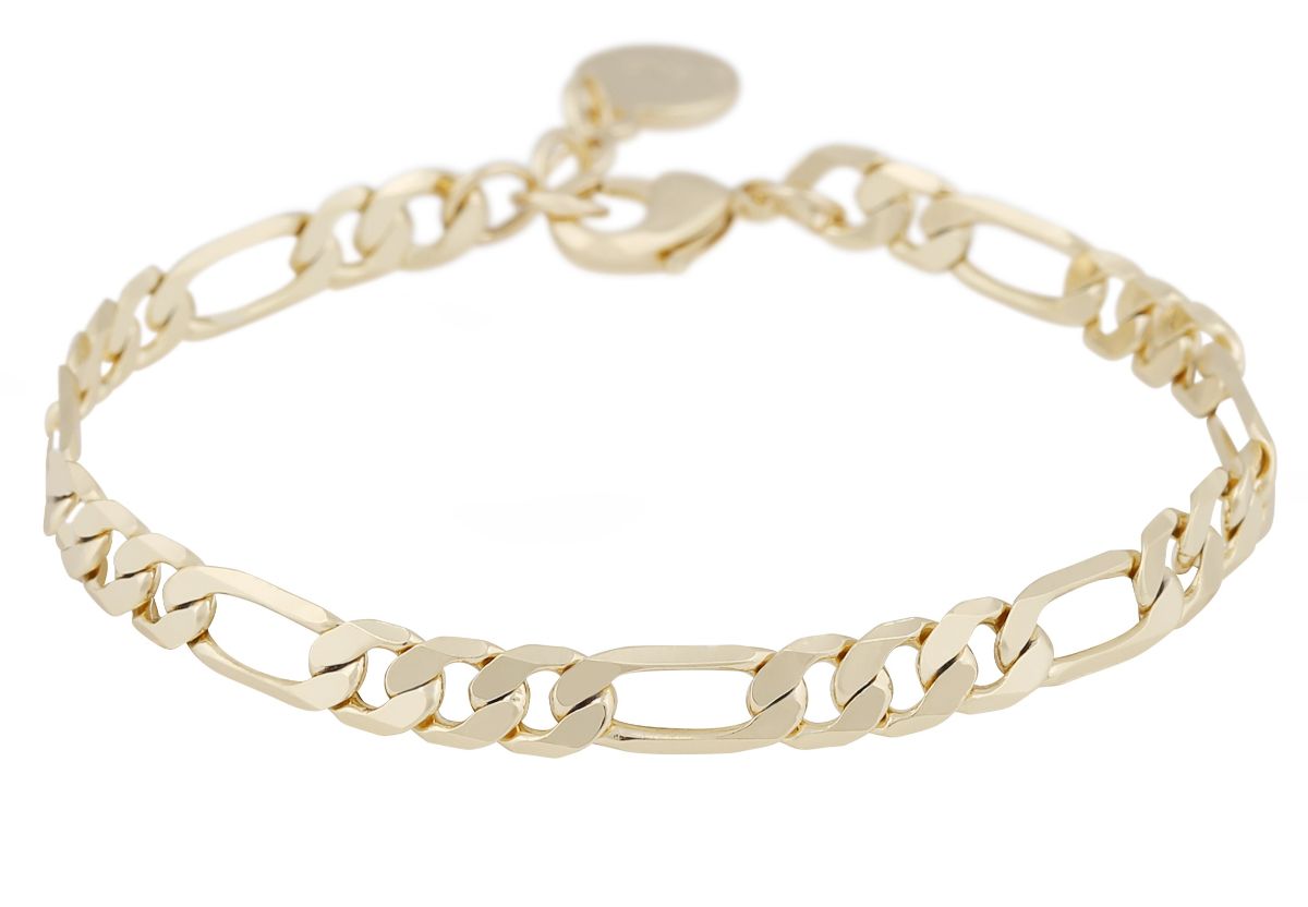 SNÖ of Sweden Row ketjurannekoru plain g 1346-3400257 on pinnoitettu aidolla keltakullalla, ja sitä koristaa ajaton figaroketju. Korun koko on 16-17,5 cm, ja leveys on 5 mm. Käytä yksinään tai yhdistele muiden ketjujen kanssa.