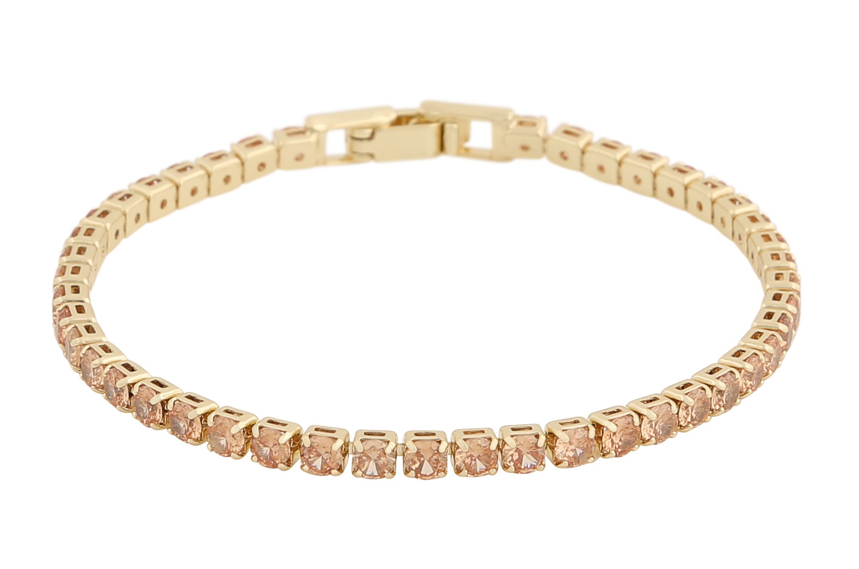 SNÖ of Sweden Siri stone gold champagne tennisrannekoru 732-3400370 on koristeltu samppanjanvärisin kivin. Tämä värikäs koru on ylellinen lisä omaan asuun, ja sen koko on 17 cm. Paksuus 3 mm.