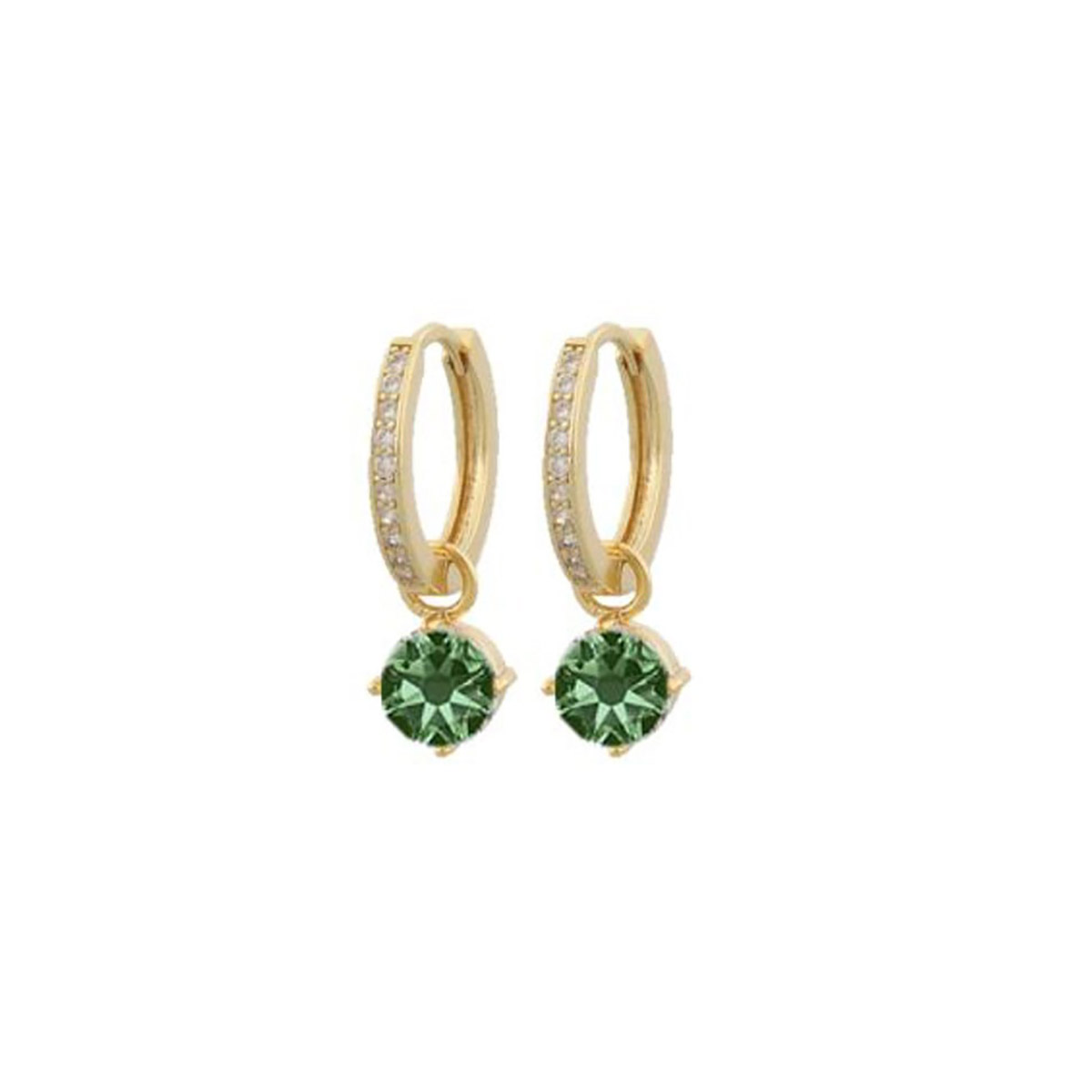 Snö of Sweden Sprinkles Rola -korvakorut yhdistävät klassisen muodon ja raikkaan värisävyn. Kullattuihin pieniin rengaskorvakoruihin on istutettu kimaltelevia kirkkaita lasikiviä, ja niissä roikkuu eläväinen vihreä pyöreä kivi, joka tuo koruihin persoonallisen säväyksen. Rengaskoko 15 mm, riipus 6 mm. Materiaali: kullattua messinkiä.