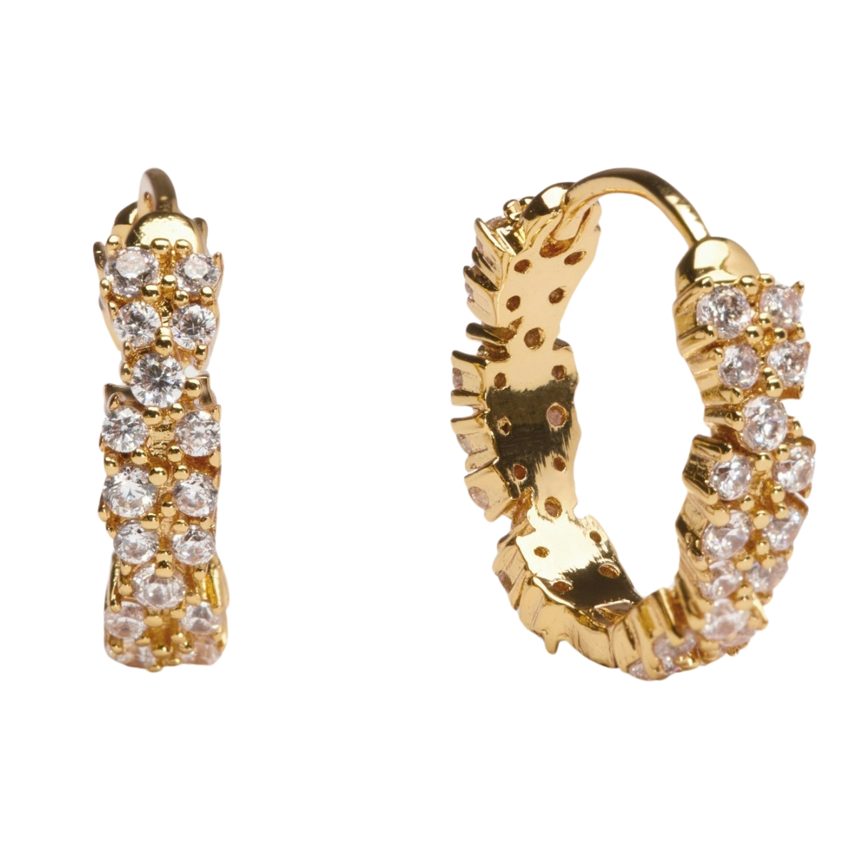 Kullatut Sparv Cocktail Hour korvakorut 1750101 kimaltavat kuin auringonsäteet. Ihanat minimalistiset ja skandinaaviseen tyyliin sopivat rengaskorvakorut ovat täydelliset arki- ja juhlakoruina. Korvarenkaassa on kaunis rivi kirkkaita zirkonioita edessä ja takana, joten ne näkyvät molemmin puolin. Korvakoru on kooltaan 16 mm ja materiaali on kullattua nikkelivapaata messinkiä. Korvakorut on pakattu huolellisesti kierrätetystä ja FSC-merkitystä paperista valmistettuun laatikkoon.