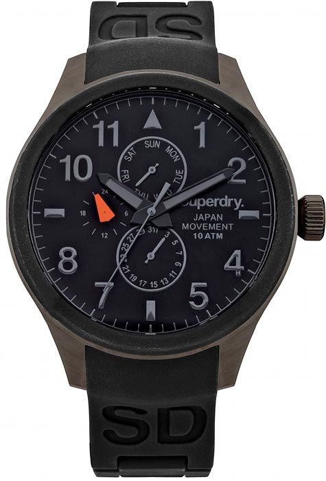 Superdry Scuba Multi SYG110B. Kellon rungon leveys 44mm ja rannekkeen leveys 20mm. Kellossa päivyri, viikonpäivänäyttö sekä 24h näyttö. Superdry kelloissa on japanilainen koneisto. Kelloille myönnetään 2 vuoden takuu ja ne toimitetaan valmistajan alkuperäisessä rasiassa.