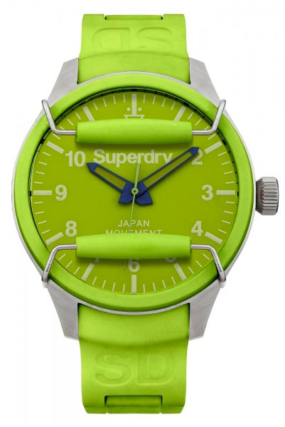 Superdry Scuba SYG123PN. Kellon rungon leveys 44mm ja rannekkeen leveys 20mm. Kellotaulun ylä- ja alaosan päällä oleva "ristikko" on irrotettavissa. Superdry kelloissa on japanilainen koneisto. Kelloille myönnetään 2 vuoden takuu ja ne toimitetaan valmistajan alkuperäisessä rasiassa.