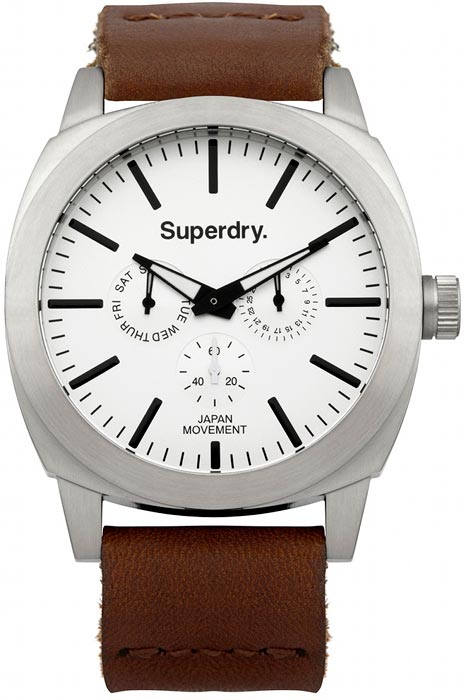 Superdry Thor Multi SYG104T. Kellon rungon leveys 45mm ja rannekkeen leveys 24mm. Kellossa päivyri sekä viikonpäivänäyttö. Superdry kelloissa on japanilainen koneisto. Kelloille myönnetään 2 vuoden takuu ja ne toimitetaan valmistajan alkuperäisessä rasiassa.