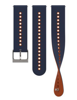 Suunto 22mm Urban 4 Granite Blue Orange SS050698000 on tyylikäs vedenpitävä silikoniranneke, jossa on sinioranssi värimaailma. Suunto Urban 4- silikoniranneke sopii kaikkiin tilanteisiin, sekä arkeen että urheiluun, ja sen ympärysmitta on 125-215 mm. Hengittävyyden takaamiseksi ranneke on rei'itetty. Kiinnittäminen kellon runkoon tapahtuu helposti pikajousinastan ansiosta, eikä vaihtoon tarvita työkaluja. Rannekkeen leveys on 22 mm. Ranneke on suunniteltu Suunto Peak 9 -kellolle, mutta se käy myös Suunto 5 Peak -kelloihin sekä muihin kelloihin, joiden rannekkeen kiinnityskohdan leveys on 22 mm.