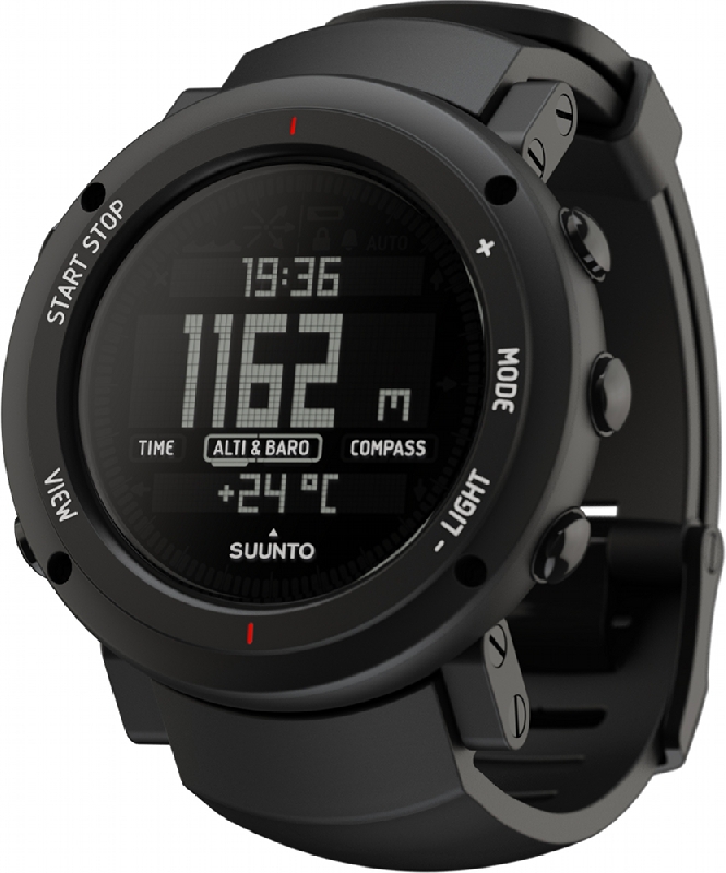 Suunto Core Alu Deep Black on kiistattomasti Core sarjan tyylikkäin rannetietokone. Se toimii tarpeen vaatiessa myös rannekellona, vaikka juhlatilanteissakin. Kellotoiminnot pitävät sisällään normaalin kellonajan lisäksi päivämäärän, kaksoisajan, ajanottokellon eli kronografin, hälytyksen (herätys) sekä ajastimen. Suunto Core Alu Deep Black kellossa on alumiinista valmistettu mustaksi pinnoitettu runko, laadukas musta silikoniranneke ja musta digitaalikellotaulu. Suunto Core sarjan laitteissa on korkeusmittari, jonka avulla voi mitata korkeuseroja, nousu- ja laskunopeutta, sekä edistymistäsi nousemasi korkeuden mukaan. Sisäänrakennetun lokin ansioista laite myös muistaa kaikki pystysuuntaiset liikkeesi alku- ja lopetusaikasi väliltä. Korkeusmittarin mittaama maksimi korkeus on 9000m, joten laitteen toiminta-alueen rajat eivät tule vastaan. Loki muistaa automaattisesti korkeus- ja ilmanpainetiedot viimeiseltä seitsemältä päivältä.