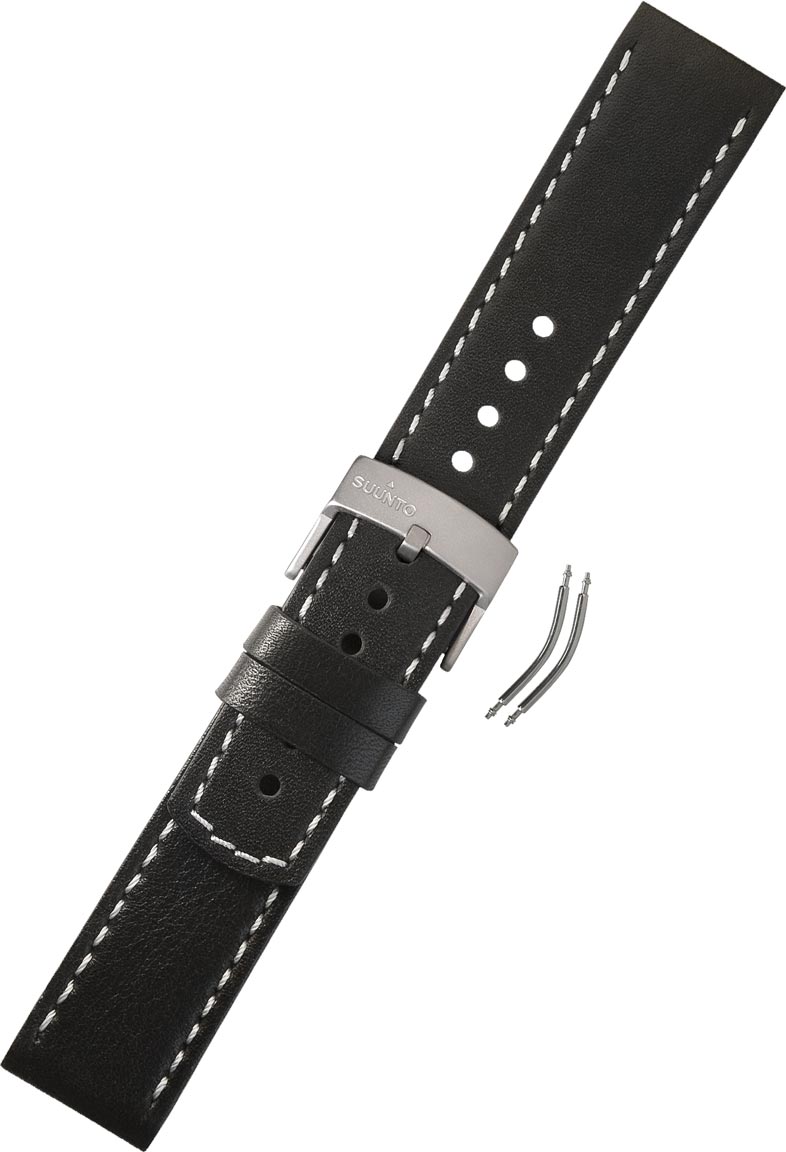 Suunto Elementum Terra SS014826000 musta nahkaranneke. Sopii kaikkiin Elementum malleihin! Tarvittavat vaihto-osat tulee pakkauksen mukana.