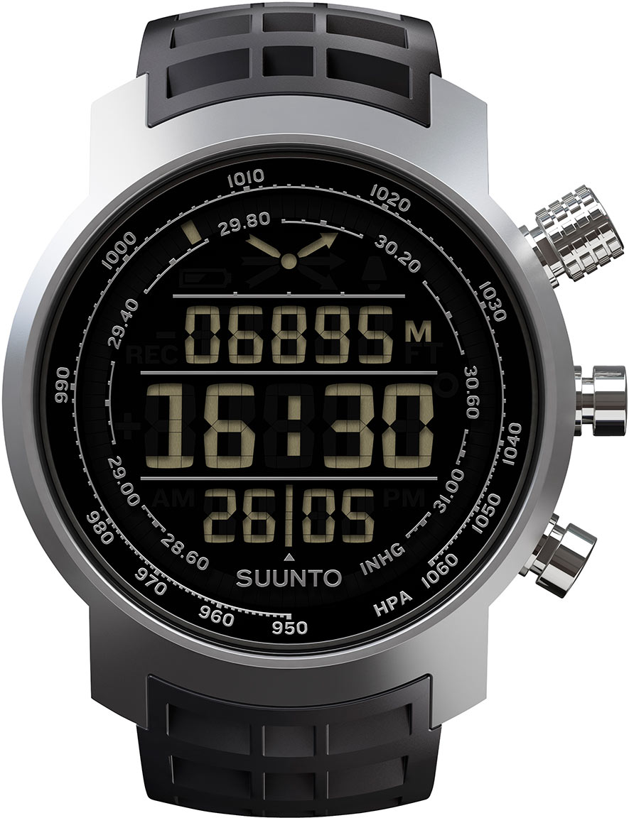 Suunto Elementum Terra Black Rubber -rannetietokoneessa yhdstyvät tinkimätön tyyli ja Suunnon vuosikymmenten kokemus tarkkuusinstrumenttien valmistajana. Terra on laatukello, jota ilman seikkailija ei halua olla. Kolhuja kestämään suunniteltu Elementum Terra antaa tarkan tiedon sijainnista niin toimiston hississä kuin vaelluksellakin. Tyylikkään kellon runko on ruostumatonta AlSl 316L -terästä. Heijastamaton ja naarmuuntumisen kestävä safiirikristallilasi suojaa korkeatasoista nestekidenäyttöä. Kello on vesitiivis 100 m asti.