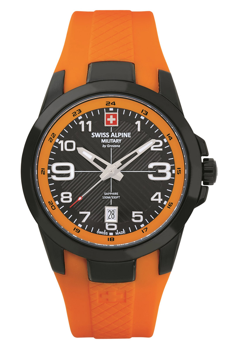Swiss Alpine Military Combat Mission 7059.1879 on kello, joka ei jää huomaamatta. Tämä "Combat Mission" -sarjan erikoismalli yhdistää taktisen mustan ja sähkön oranssin värimaailman, luoden kokonaisuuden, joka huokuu energiaa ja toimintavalmiutta. Se on täydellinen valinta aktiiviseen elämäntapaan, jossa vaaditaan kellolta sekä tinkimätöntä kestävyyttä että selkeää luettavuutta kaikissa olosuhteissa.