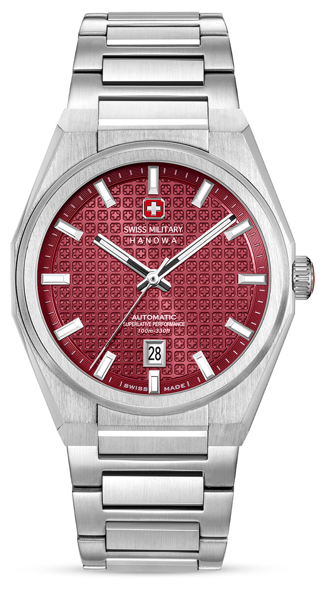 Swiss Military Hanowa Avalanche 735 SMWGC0007401 automaattikello sisältää ruostumattoman teräskuoren ja täyden automaattikoneiston, joka pyörii ilman paristoa ja hyödyntää ranteen liikettä energiana. Runko on leveydeltään 41 mm ja naarmuuntumaton safiirilasi suojaa kellotaulua naarmuilta ja säilyttää tarkan näkyvyyden eri valaistusolosuhteissa. Punaisesta kellotaulusta löytyy päivyri klo 6 kohdalta sekä luminoidut viisarit ja indeksit auttavat kellotaulun lukemisessa pimeässä. Kello kuuluu vesitiiviysluokkaan 100m / 10atm eli se soveltuu pintauintikäyttöön ja snorkkelisukellukseen.