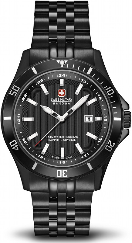 Swiss Military Flagship 6-5161.7.13.007 rannekello. Kellossa teräsrunko, jonka leveys 42mm ja teräsranneke, jonka leveys 20mm. Kellossa safiirilasi. Swiss Military Hanowa kelloille myönnetään 2 vuoden takuu. Kello toimitetaan valmistajan alkuperäisessä rasiassa postikuluitta!