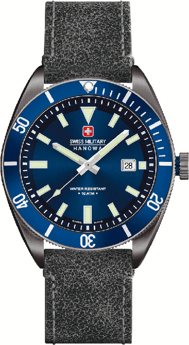 Swiss Military Hanowa Skipper 6-4214.30.003 rannekello. Kellossa teräsrunko, jonka leveys 44mm ja nahkaranneke, jonka leveys 22mm. Swiss Military Hanowa kelloille myönnetään 2 vuoden takuu. Kello toimitetaan valmistajan alkuperäisessä rasiassa postikuluitta!