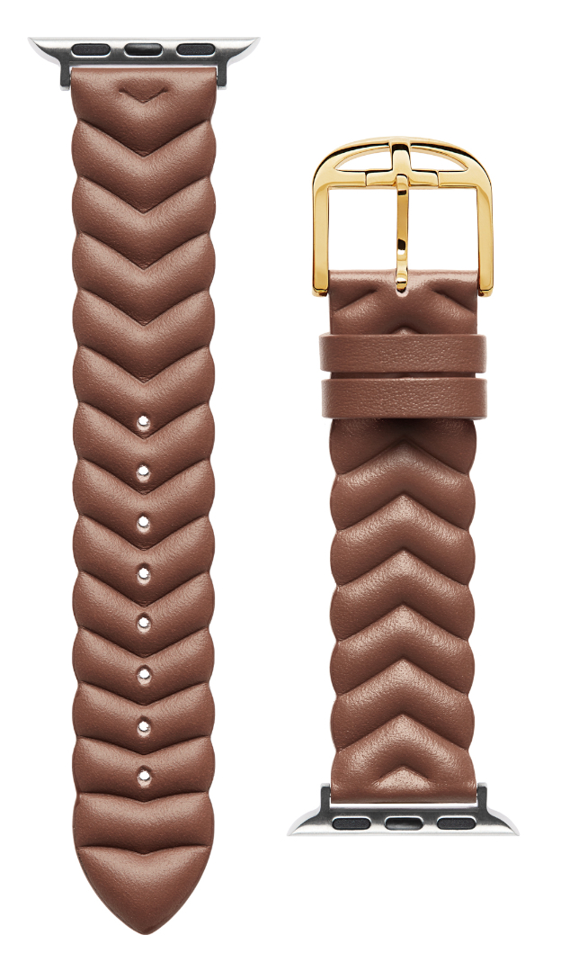 Ted Baker Apple Watch ruskea nahkaranneke 38/40/41/42 mm BKS38F112B0 on täydellinen lisä Apple Watch älykelloosi. Tämä ruskea ranneke on tukevaa Bovine-nahkaa, ja sen pinta on viimeistely kolmionmallisella chevron-ompeleella. Ranneke se sopii Apple Watch-kelloihin, joissa on 38,40 ja 42 mm leveä runko. Ranneke on helppo kiinnittää Apple Watch:in rungon uraan leveillä kiinnikkeillä. Säätö omaan ranteeseen tapahtuu kullanvärisellä solkilukolla. Ranneke sopii max. 21 cm ranteisiin.