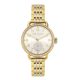 Ted Baker BKPHHF106 on tyylikäs naisten kello. Kellon kullanvärinen runko on valmistettu ruostumattomasta teräksestä. Sen leveys on 34,5 mm ja paksuus on 8,5 mm. Rannekkeena tässä mallissa on kullanvärinen teräsranneke. Hopeanvärisessä kellotaulussa on kullanväriset indeksit ja osoittimet sekä pienempi glitter-koristeltu kellotaulu. Kellon kehä on koristeltu kristallein. Ted Baker -kelloilla on 2 vuoden takuu ja ne toimitetaan valmistajan alkuperäisessä rasiassa.