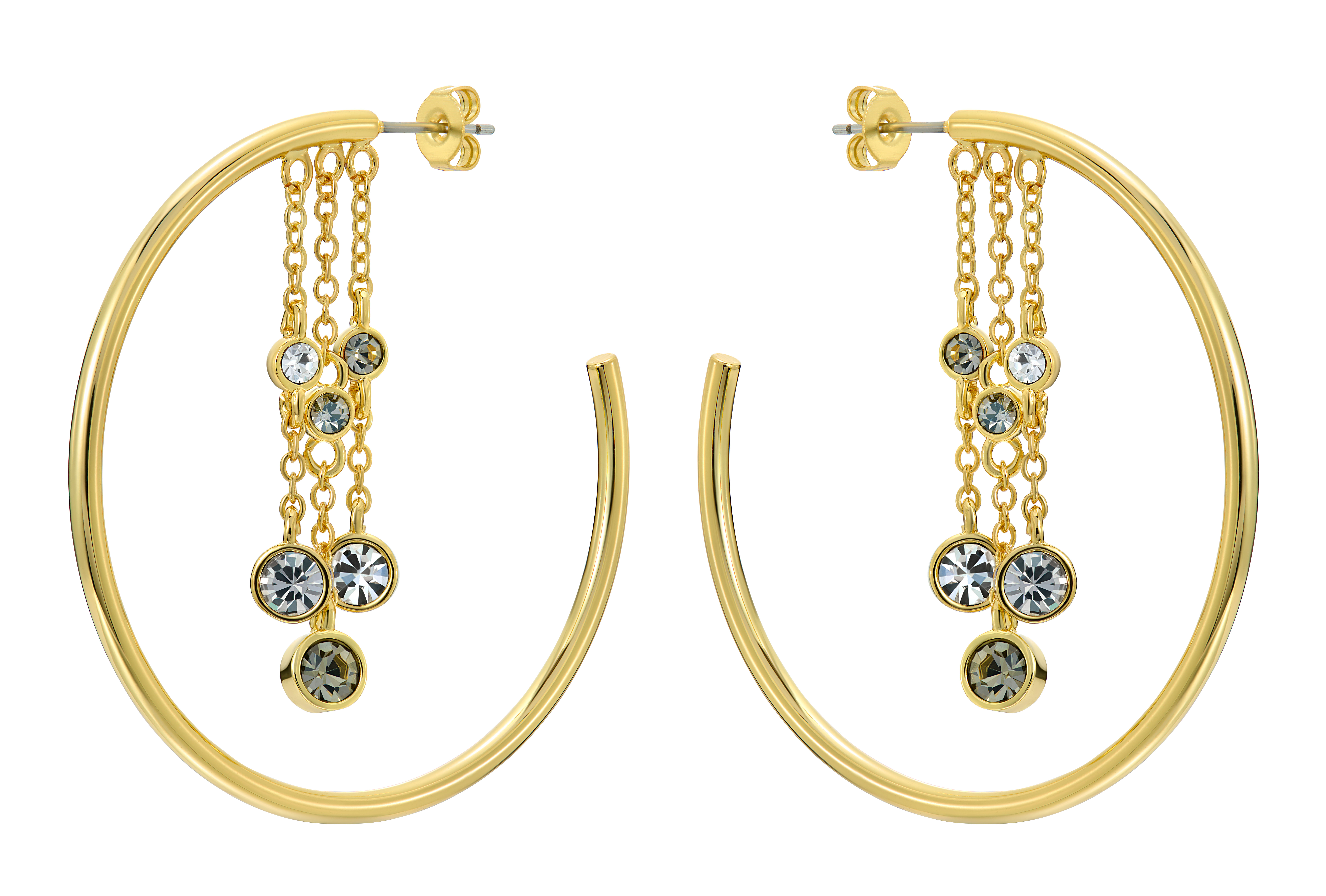 TED BAKER CASSIDY 06-TBJ4111-02-38 ovat suuret ja elegantit korvarenkaat, joista riippuviin koruihin on istutettu säihkyvät kristallit koristeeksi. Molemmissa korvakoruissa on kolme kirkasta sekä kolme tummaa kristallia. Nämä elegantit kultapinnoitteiset korvakorut sopivat etenkin juhliin ja tyylikkääseen ajanviettoon. Korvakorut on valmistettu messingistä ja niissä on tappikiinnitys. Ted Baker-korut toimitetaan valmistajan alkuperäisessä rasiassa ja niillä on 1 vuoden takuu.