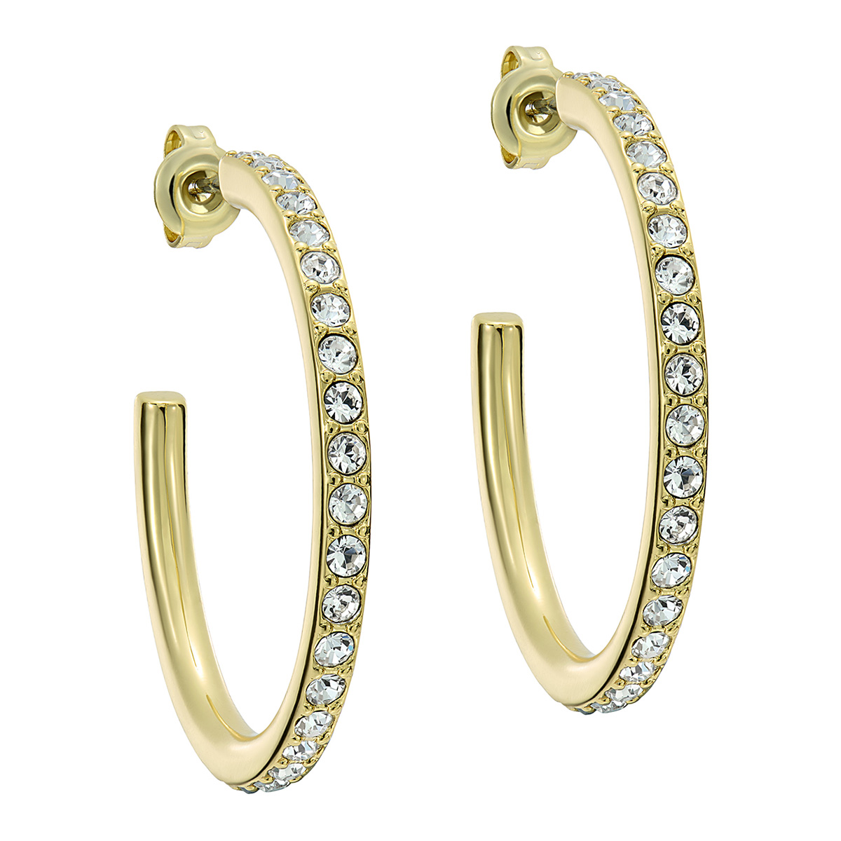 Anna tyylillesi viimeinen silaus TED BAKER CLANCI 06-TBJ4063-02-02 -korvakoruilla, joiden kohokohtana on kirkkaat säihkyvät kristallit. Nämä kullansävyiset ja messingistä valmistetut korvakorut on suunniteltu tuomaan ripaus säihkettä ja hienostuneisuutta jokapäiväiseen tyyliin. Sisähalkaisija 24 mm, korkeus 30 mm ja leveys 2,4 mm. Korvakoruissa on nappikiinnitys.