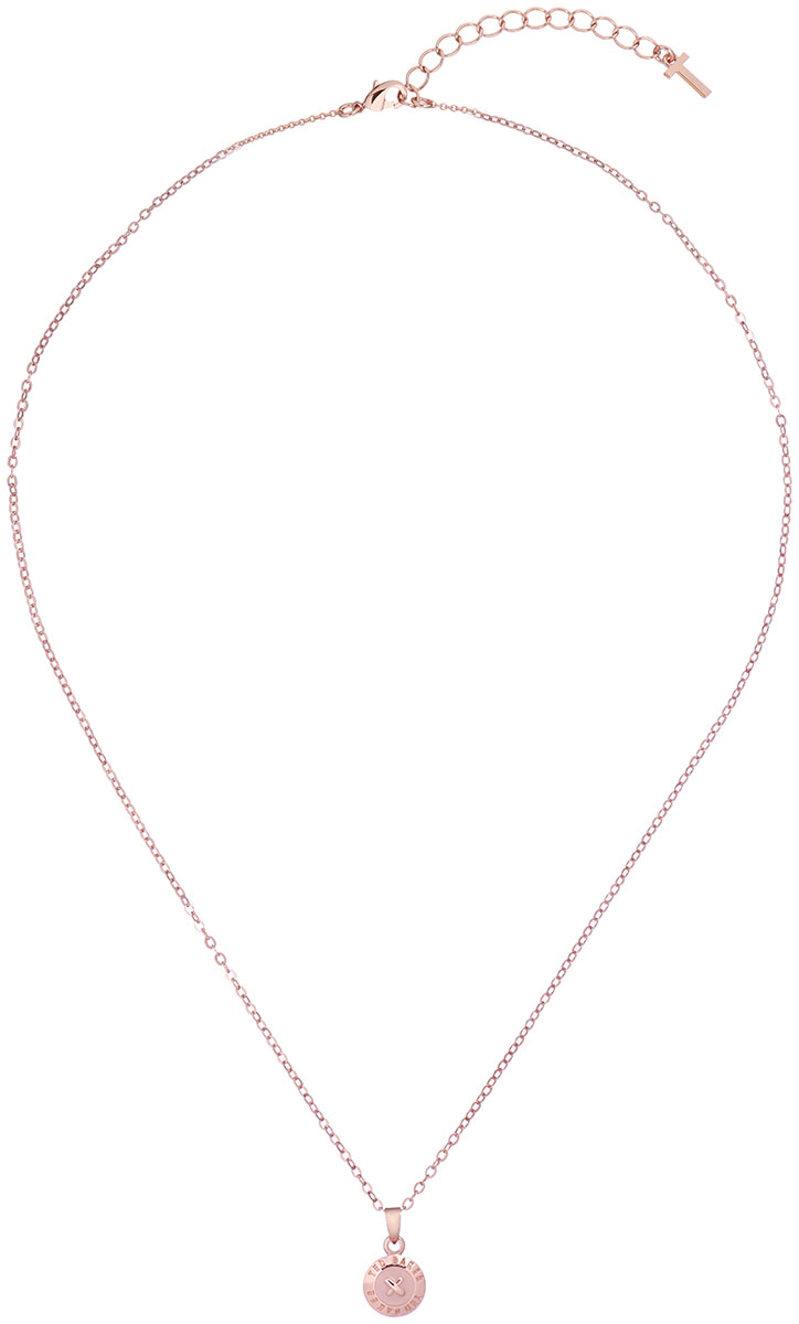 Ted Baker Elvin Mini Button 06-TBJ1260-24 -kaulakoru on valmistettu ruusukullanväriseksi pinnoitetusta metalliseoksesta. Riipuksena oleva nappi on koristeltu Ted Baker -logolla ja emalilla. Ted Baker-koruilla on vuoden takuu ja ne toimitetaan valmistajan alkuperäisessä rasiassa.