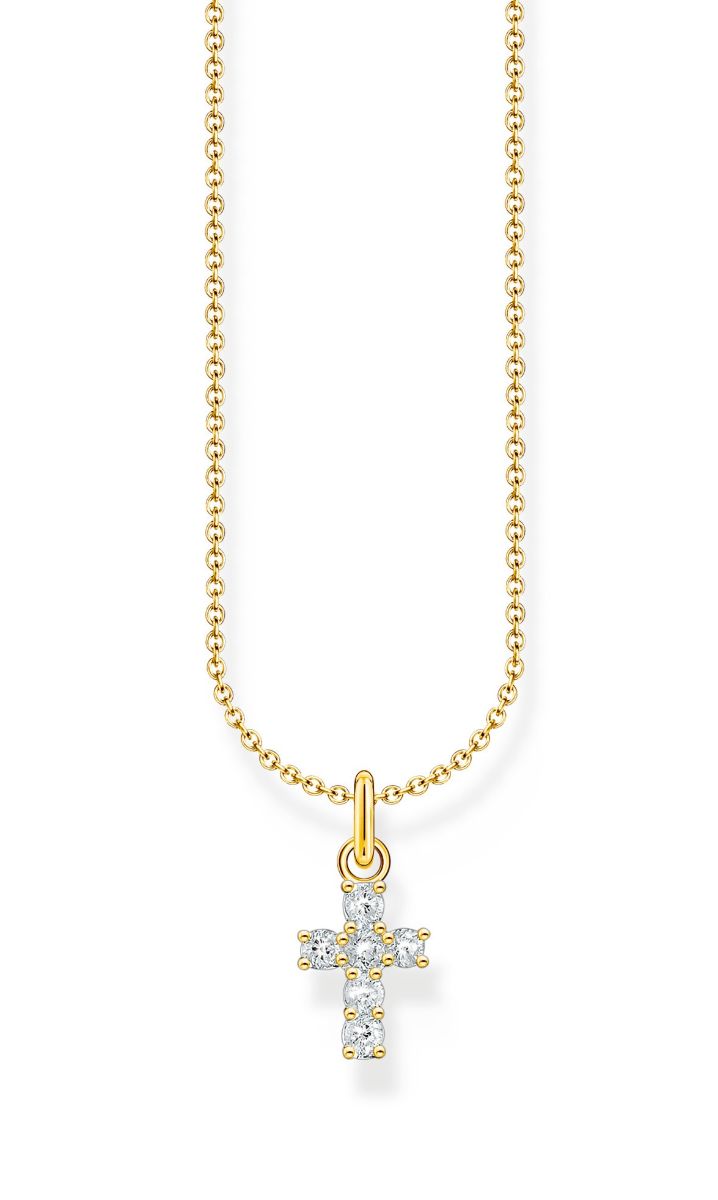 Thomas Sabo ristikaulakorun KE2226-414-14-L45V 18 karaatin keltakultaus ja kimaltelevien kirkkaiden zirkoniakivien yhdistelmä antaa ajattomalle ristisymbolille trendikkään kosketuksen ja luo korun, joka sopii kaikkiin asuihin. Ristikoru on valmistettu kierrätetystä sterling-hopeasta, jossa on 18-karaatin kultaus. Ketju on säädettävä pituus välillä 38-45 cm. Ristin koko on 9 x 16 mm. Thomas Sabo-korut toimitetaan kotiin valmistajan pakkauksessa.