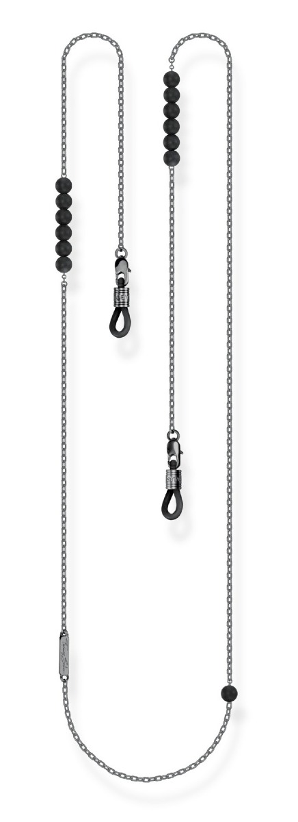 Thomas Sabo aurinkolasiketju mustilla obsidiaanihelmillä musta EKE003-339-11-L76 on helppo yhdistää omiin aurinkolaseihin tai silmälaseihin ketjun päissä olevien silikonikiinnikkeiden avulla. Ketjua koristaa mustat obsidiaanihelmet. Silmälasiketju on ruostumatonta terästä. Pituus: 76 cm.