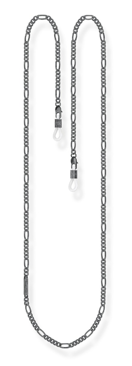 Thomas Sabo aurinkolasiketju tummennettu figaro EKE002-225-11-L76 on helppo yhdistää omiin aurinkolaseihin tai silmälaseihin ketjun päissä olevien silikonikiinnikkeiden avulla. Silmälasiketju on figaroketjua, ja valmistettu ruostumattomasta teräksestä. Pituus: 76 cm.