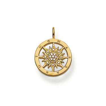 Special Addition sarjan Thomas Sabo aurinkoriipus kirkkailla Zirconia -korukivillä. Riipus on valmistettu hopeasta, joka on päällystetty 18 karaatin kullalla ja sen mukana ei tule ketjua. Kaikki Thomas Sabo tuotteet toimitetaan postikuluitta valmistajan alkuperäisessä rasiassa.
