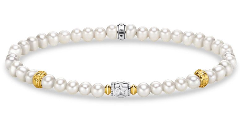 Thomas Sabo beige pearls with crescent moon hopea A1979-430-14-L15,5 on klassinen helmirannekoru, jossa on joustava, miellyttävä ranneke, ja materiaalinsa ansiosta koru tuntuu hyvältä ihoa vasten. Säihkettä antaa hopeiset ja 18-karaatin kullalla koristellut yksityiskohdat. Korun pituus on 15,5 cm ja paksuus n. 50 mm. Thomas Sabo-korut toimitetaan valmistajan alkuperäisessä rasiassa.