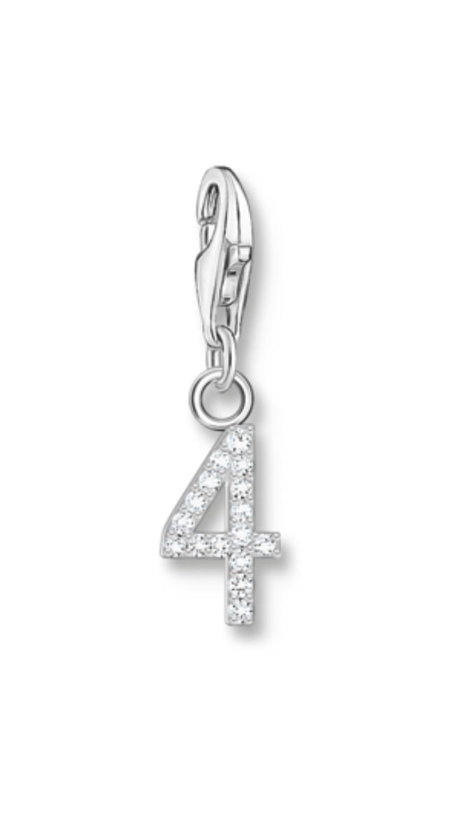 Kanna lempinumeroitasi korujen muodossa. Thomas Sabo Charm Club Charmista 4 Hela 2128-051-21 on koristeltu luvulla 4. Numerokoru on valmistettu sterling-hopeasta. Korun koko on 23 mm.