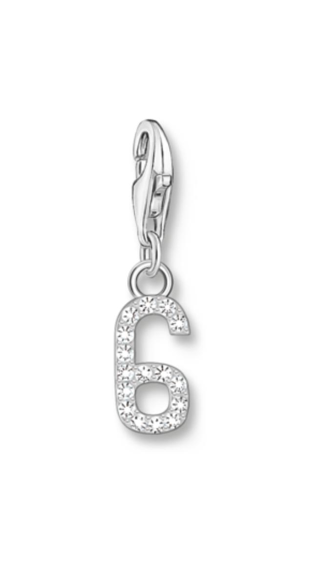 Kanna lempinumeroitasi korujen muodossa. Thomas Sabo Charm Club Charmista 6 Hela 2130-051-21 on koristeltu luvulla 6. Numerokoru on valmistettu sterling-hopeasta. Korun koko on 23 mm.
