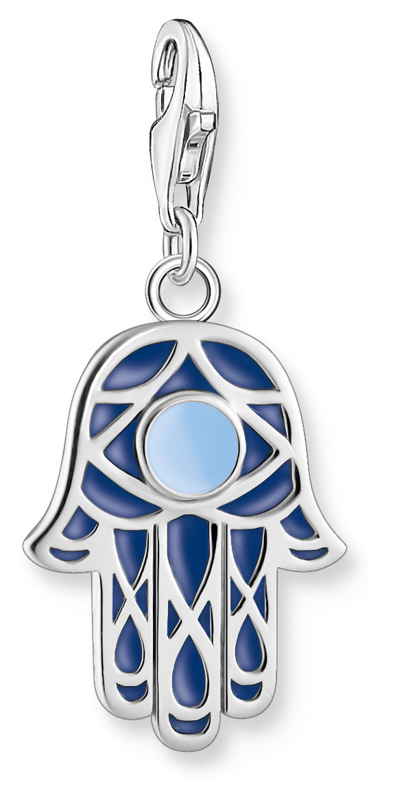 Thomas Sabo Charm Club Charmista Fatima hela 2020-007-1 on valmistettu sterling-hopeasta, ja sitä koristaa sininen emalointi. Korkeus 32 mm.