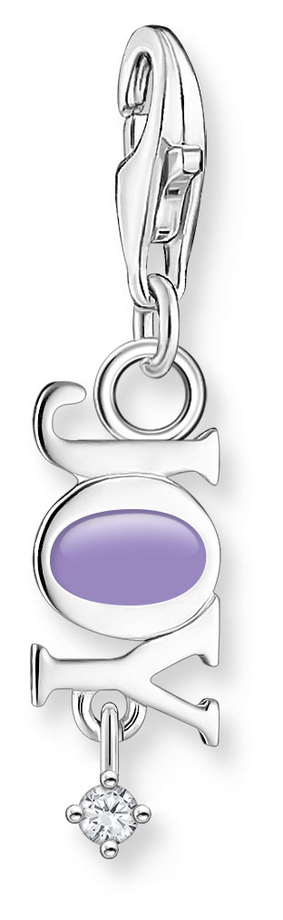 Thomas Sabo Charm Club Charmista Joy silver hela 2008-041-13 muistuttaa elämän iloista. Hela on valmistettu sterling-hopeasta, ja sitä koristaa lila emalointi sekä kirkkaat zirkoniat. Korkeus 26 mm.