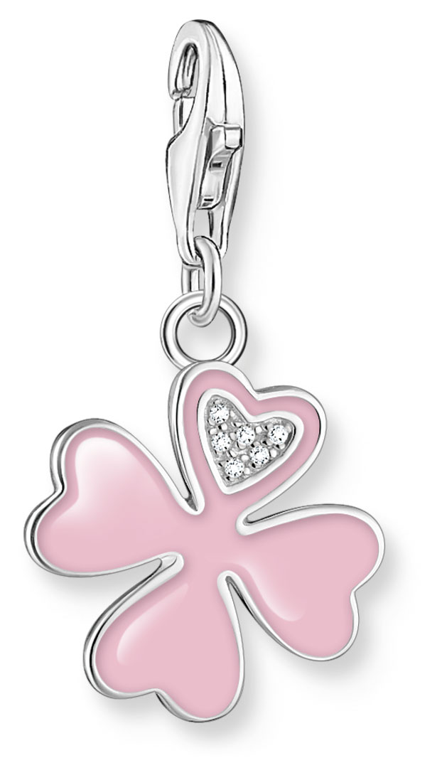 Thomas Sabo Charm Club Charmista pink cloverleaf hela 2022-041-9 tuo onnea kantajalleen. Neliapila on valmistettu sterling-hopeasta, ja sitä koristaa pinkki emalointi ja kirkkaat zirkoniat. Korkeus 26 mm.