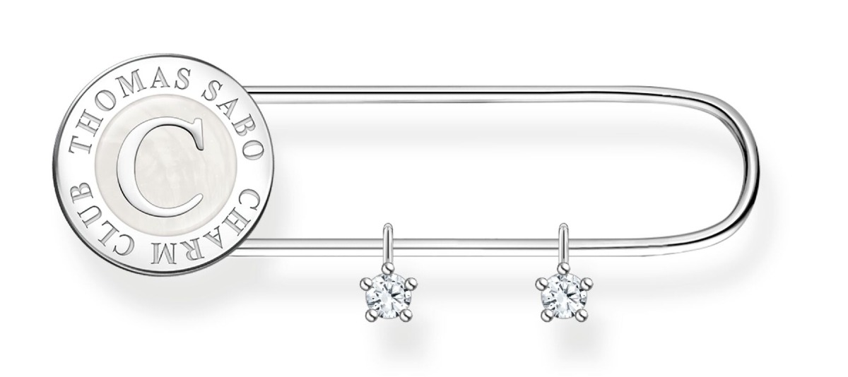 Thomas Sabo Charm Club Charmista white stones in safety pin design silver rintaneulaa X0290-225-14 voit käyttää sellaisenaan, tai yhdistää siihen Thomas Sabo-riipuksen. Rintaneula on helppo muuttaa omaan tyyliin sopivaksi erikseen ostettavien riipusten avulla. Rintaneula on valmistettu sterling-hopeasta, ja sitä koristaa kirkkain, synteettisin zirkonioin koristellut riipukset. Rintakorun koko on 13 x 42 mm.