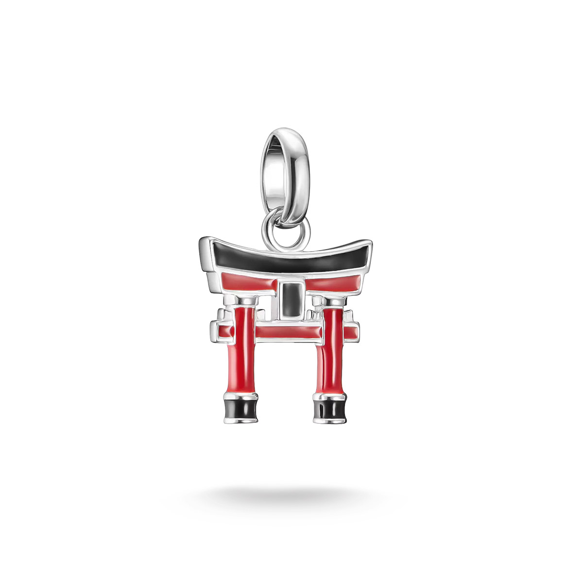 Tämä yksityiskohtainen Thomas Sabo Charm Club Connect Tokyo Crush Torii hela tuo japanilaisen arkkitehtuurin taikaa suoraan asusteisiisi. 925-sterling-hopeasta valmistettu ja punaisella sekä mustalla emalilla koristeltu ikoninen portti on saanut inspiraationsa historiallisten pyhäköiden vahvoista väreistä. Noin 20,5 mm korkea ja 13 mm leveä riipus symboloi suojelua, siirtymiä ja uusia polkuja, tuoden tyyliisi syvää kulttuurista merkitystä ja sisäistä voimaa. Se kiinnittyy helposti lenkillä niin ranne- kuin kaulakoruihin.