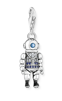 Thomas Sabo Charm Club diver silver 1896-644-7 sukeltaja-riipuksessa on merellinen teema, ja tätä sterling-hopeista helaa koristaa merensiniset kristallit. Korkeus 3 cm. Thomas Sabo korut toimitetaan valmistajan alkuperäisessä pakkauksessa.