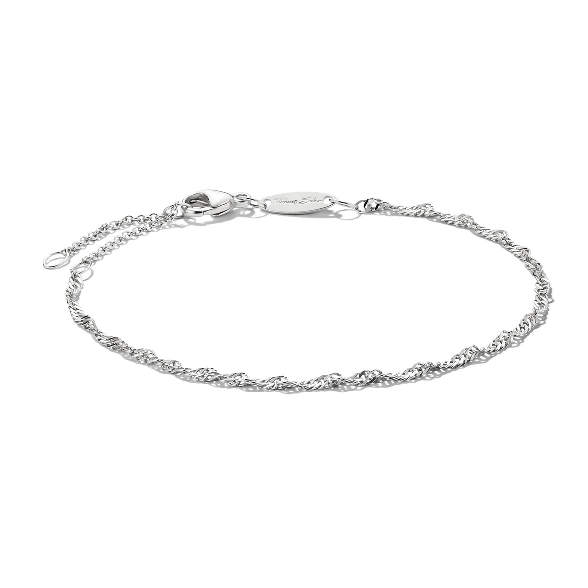 Thomas Sabo Charm A2208-001-21-L19v -rannekoru on täydellinen pohja henkilökohtaiselle korukokoelmallesi. Siinä on hienostunut Singapore-ketju, joka tunnetaan sen kierteisestä ja valoa heijastavasta rakenteestaan. Rannekoru kuuluu Thomas Sabo Charm Club -mallistoon, mikä tarkoittaa, että voit personoida sen helposti kiinnittämällä siihen haluamiasi hela-riipuksia. Rannekoru on valmistettu kierrätetystä 925 sterlinghopeasta ja se on varustettu upealla hummerilukolla ja Charm Club -logorenkaalla. Rannekorun pituus on säädettävissä jatkopalalla välille 16-19 cm ja ketju on paksuudeltaan 1,7 mm.