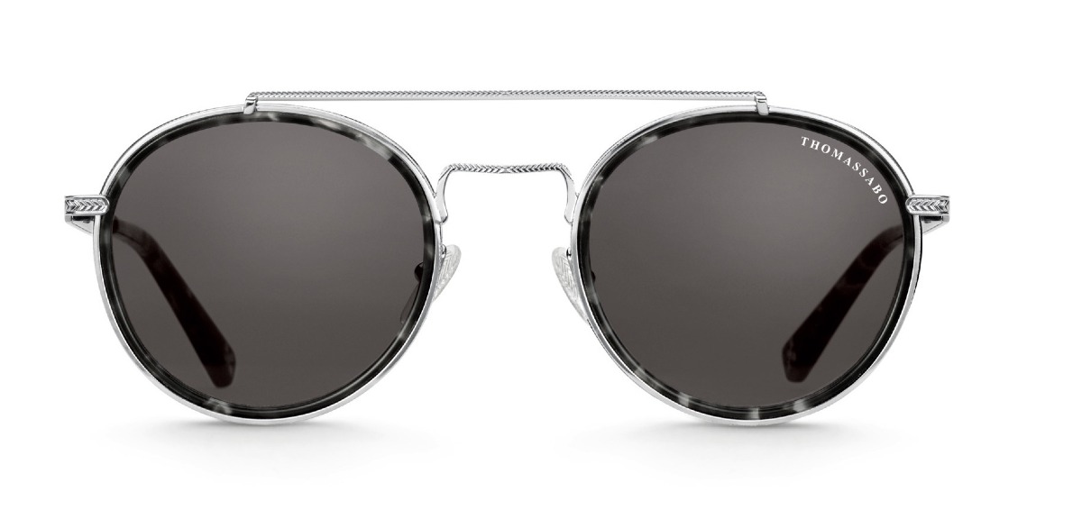 Ohutsankaisia Thomas Sabo Johnny panto ethnic Havana black E0006-052-106-A -aurinkolaseja koristaa klassiset ja ajattomat kilpikonnakuvioiset kehykset ja graafinen kuvio aurinkolasien hopeanvärisessä sangassa. Double bridge-kehykset kehykset ovat asetaattia ja metallia, ja sangan muoviosa taittuu hyvin korvan taa pitäen lasit paikoillaan. Reunassa on suojus, joka estää heijastuksen. Thomas Sabo Johnny Panto ethnic Havana black -aurinkolasit toimitetaan nahkaisessa pakkauksessa puhdistupyyhkeen kera.