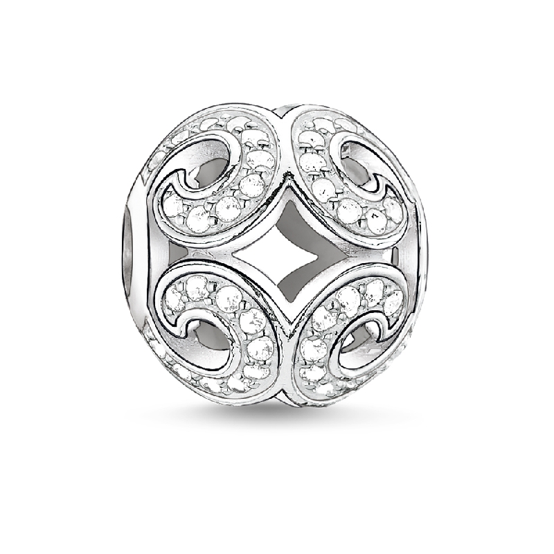 Tuotteen nimi: Thomas Sabo Karma Bead glittering wave K0012-051-14 Materiaali: Aitoa 925-sterling hopeaa ja kivinä synteettisiä Zirconiaioita Halkaisija noin 11mm