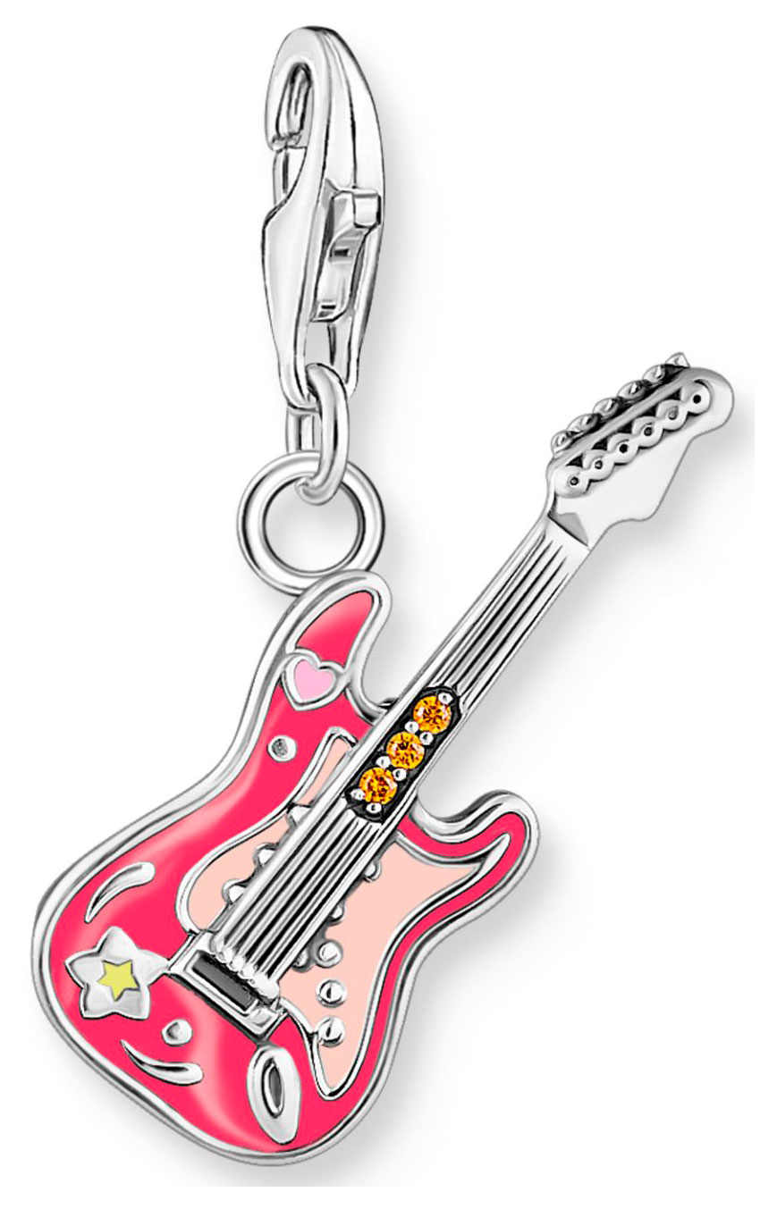 Thomas Sabo 2220-691-7 helassa esiintyy tyylikäs sähkökitara, joka sopii kaikenikäisille musiikin ystäville ja harrastajille! Pinkin ja vaaleanpunaisen emaleilla värjätty kitara on myös varustettu yksityiskohtaisilla kuvioinneilla, jotka antavat lisähohtoa helalle. Materiaali: kierrätetty 925-Sterling hopea. Kiinnityskoukku tekee helan helposti lisättäväksi kaula- ja rannekoruihin, ja voit yhdistää sen muiden charmien kanssa saadaksesi täydellisen ilmeen.