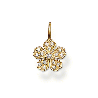 Special Addition sarjan Thomas Sabo kukka riipus PE559-414-14. Riipus on valmistettu hopeasta, joka on päällystetty 18 karaatin kullalla. Riipuksen kivet ovat synteettisiä Zirconiaioita Riipuksen mukana ei tule ketjua. Kaikki Thomas Sabo tuotteet toimitetaan postikuluitta valmistajan alkuperäisessä lahjarasiassa.