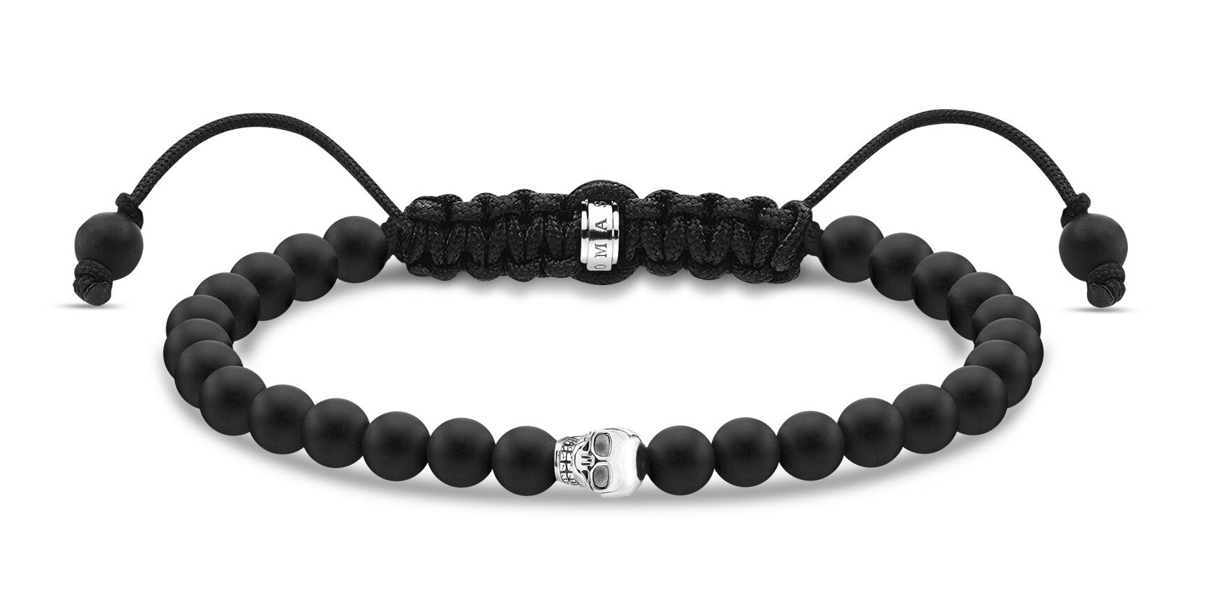 Thomas Sabo black skull silver A2015-811-11-L22V-rannekoru on valmistettu syvänmustasta obsidiaanihelmistä, ja korua koristaa sterling-hopeinen kallokoru. Ranneke on säädettävissä 15-22 cm pituuteen. Thomas Sabo-korut toimitetaan valmistajan alkuperäisessä pakkauksessa.