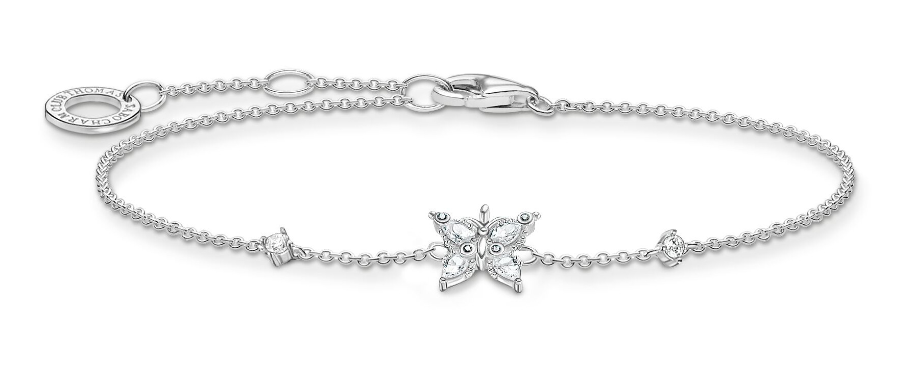 Sterling-hopeinen Thomas Sabo butterfly white stones A2028-051-14-L19V-rannekoru muistuttaa kesästä, ja korussa on hopeaketju ja pisaranmuotoisten ja pyörein zirkonioin koristeltu perhonen. Rannekorun koko on säädettävissä 16-19 cm pituuteen, ja korun leveys on 9 mm. Thomas Sabo-korut toimitetaan valmistajan alkuperäisessä pakkauksessa.