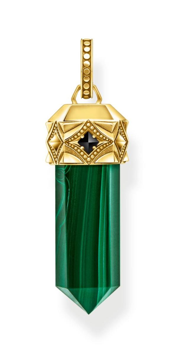 Thomas Sabo Rebel at Heart Rebel Crystal malachite riipus PE964-414-6 on viimeistelty mustilla, synteettisilä zirkonioilla ja malakiittiriipuksella. Koru on 18-karaatin kullattua sterling-hopeaa, ja sen koko on 35 mm. Ketju myydään erikseen. Thomas Sabo-korut toimitetaan valmistajan alkuperäisessä pakkauksessa.