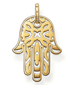 Special Addition sarjan Thomas Sabo riipus PE546-413-12 Hand of Fatima. Riipuksen on valmistettu hopeasta, joka on päällystetty 18 karaatin kullalla. Riipuksen mukana ei tule ketjua. Kaikki Thomas Sabo tuotteet toimitetaan postikuluitta valmistajan alkuperäisessä lahjarasiassa.