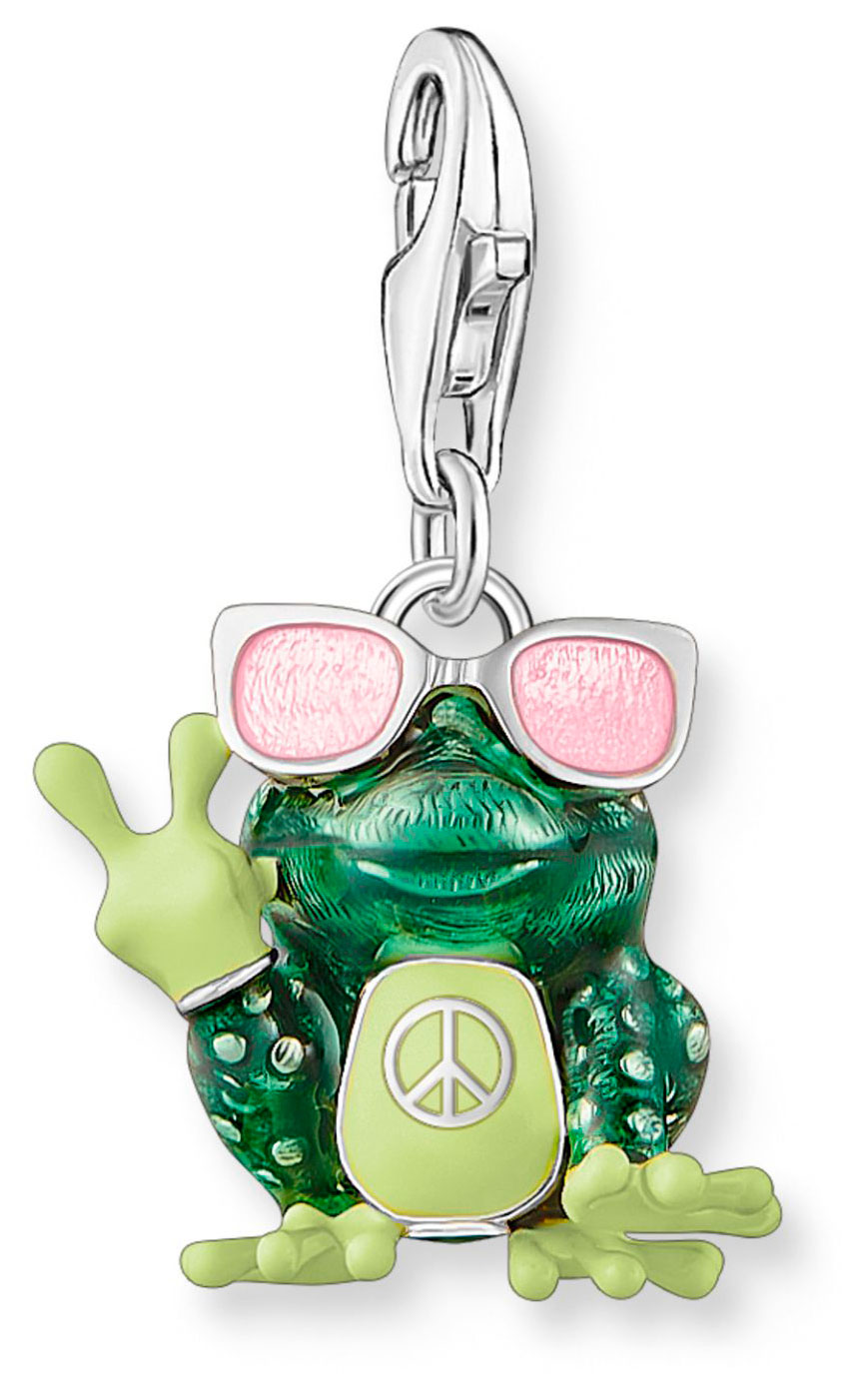 Thomas Sabo 2215-691-7 helassa esiintyy tyylikäs sammakko, joka on pukeutunut vaaleanpunaisiin aurinkolaseihin. Tämä 925-Sterling hopeasta valmistettu ja emaloitu rento sammakko kantaa peace/rauhan-merkkiä rinnassaan ja pitäen kahta sormeaan pystyssä rauhan merkkinä. Kiinnityskoukku tekee helan helposti lisättäväksi kaula- ja rannekoruihin, ja voit yhdistää sen muiden charmien kanssa saadaksesi täydellisen ilmeen.
