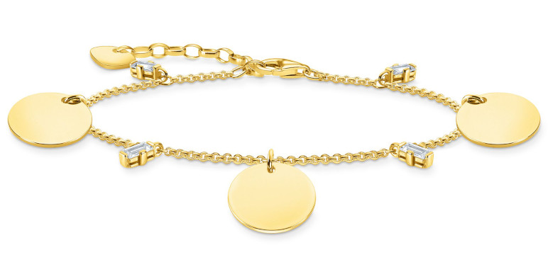 18-karaatin kullalla pinnoitetusta Thomas Sabo wih three discs and white stones A1962-414-39-L19V-rannekorusta on helppo luoda lempikoru itselle tai lahjaksi. Rannekorussa on kolme sileää, pyöreää laattaa, joihon on mahdollista kaivertaa henkilökohtainen viesti, nimi tai päivämäärä. Valitse ensin kaiverrus ja kaiverruksessa käytettävä tekstityyli ja kirjoita kaiverrettavat tiedot "kaiverrettava teksti" -kenttään (maks. 10 merkkiä per laatta). Koru on valmistettu sterling-hopeasta, ja koristeltu useilla baquette-hiotuilla zirkonioilla. Ketjun pituus on säädettävissä 16-19 cm pituuteen. Thomas Sabo-korut toimitetaan valmistajan alkuperäisessä pakkauksessa.