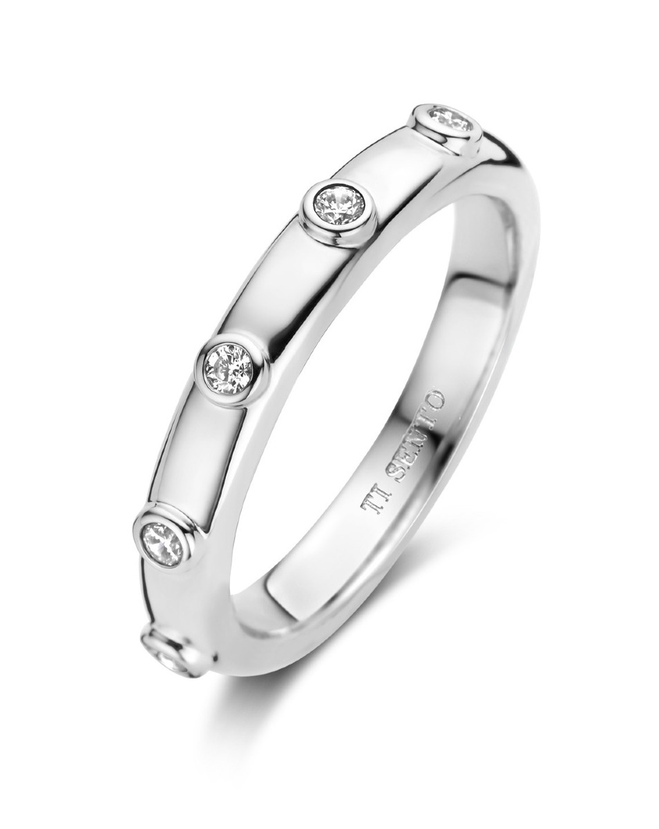 TI SENTO Star light hopea rivisormuksen 12315ZI pintaan on istutettu useita briljanttihiottuja synteettisiä zirkonioita. Rivisormuksen pinta on viimeistelty platinalla, joka pitää sterling-hopean kiiltävänä pitkään. Sormuksen koko kivien kohdalta on 3 mm, ja rungon leveys takaa on 2 mm. TI SENTO -korut toimitetaan valmistajan alkuperäisessä rasiassa, ja niillä on 2 vuoden takuu, joka kattaa valmistus- ja materiaalivirheet.